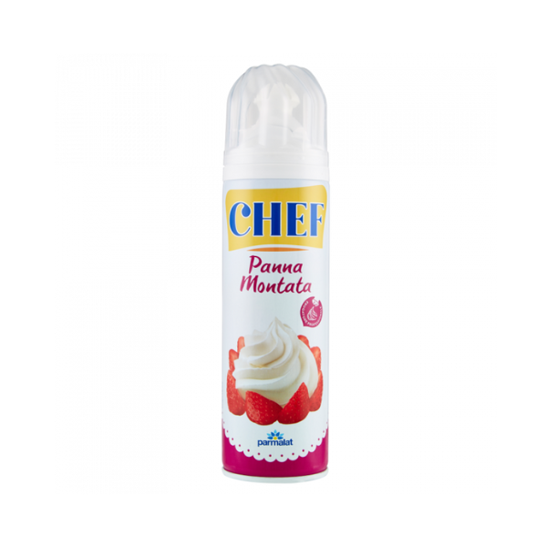 Bita śmietana w sprayu Chef Parmalat 250g. Znakomicie komponuje się ze świeżymi owocami, z goframi, herbatnikami lub po prostu z odrobiną cynamonu i kakao. Montaż z Chef Cream Spray odbywa się bezpośrednio w momencie dozowania, dzięki czemu jego użycie jest jeszcze łatwiejsze i szybsze.